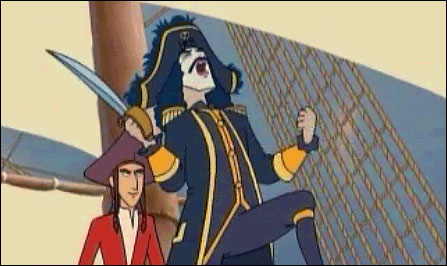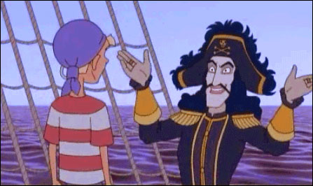 Жил на свете маленький мальчик, отец у которого однажды уплыл в море и не вернулся, а мать целыми днями чинила сети и помогала рыбакам ловить крабов и делать крабовые палочки. Мальчика звали Малыш, он с детства всего боялся — пауков, пенки на молоке, лука в супе и старух с кривыми клюками. ![]() И вот однажды на горизонте в маленьком городе, где жил Малыш, появился огромный-преогромный чёрный-пречерный корабль с флагом, на котором красовался череп с перекрещенными костями и надпись «Мрачная Дама». По привычке Малыш до того перепугался, что спрятался под табуреткой в прибрежном кабаке. Но скоро в кабак завалилась команда матросов во главе с капитаном, который свирепо вращал глазами, бил посуду и пел песни. В конце концов, он так разошёлся, что стукнул кулаком по столу, и из перстня на его безымянном пальце выкатился мерцающий драгоценный камень размером с акулий глаз. Камень незаметно закатился прямо под табуретку, где сидел Малыш, дрожа, как медуза во время шторма. «Клянусь здоровьем моего попугая, три пинты виски тому, кто найдёт мой изумруд!» — взревёл капитан. Малыш очень любил животных, особенно попугаев, поэтому он собрал волю в кулак, выполз из-под табуретки и протянул капитану камень. «Какой славный малый! Пожалуй, ты будешь юнгой на моём корабле!» — прорычал Капитан Саблезуб. Попугай был спасён, а Малыш от страха не мог вымолвить ни слова. На следующий день «Мрачная Дама» унесла его в море. ![]() ::